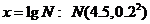 假定對數(shù)壽命服從均值為4.5、標準差為0.2的正態(tài)分布,即
